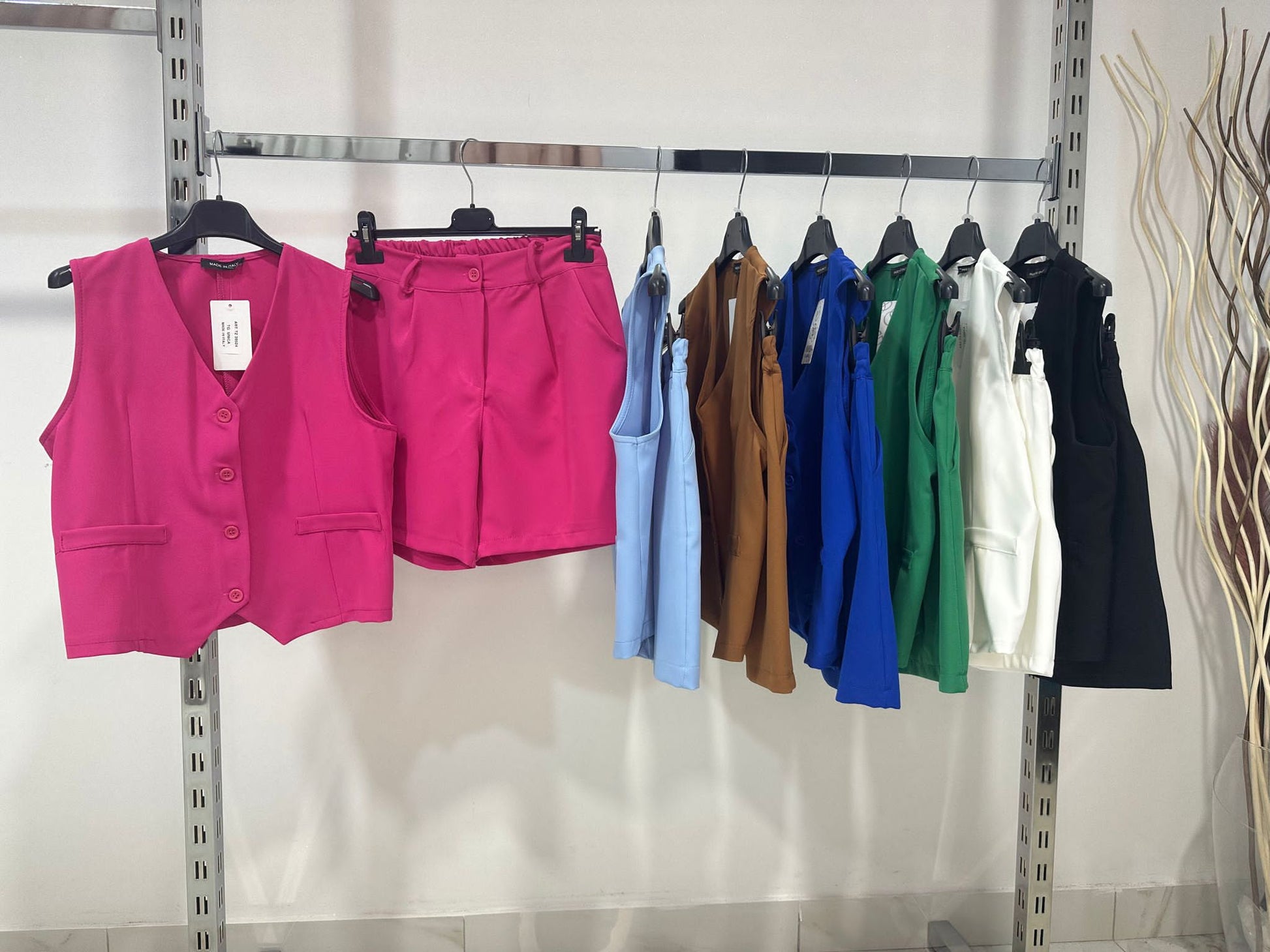 Il Completo Matilde unisce eleganza e freschezza in un design moderno, ideale per l’estate. Composto da pantaloncino e gilet coordinati, offre comfort e stile senza rinunciare alla praticità. Perfetto per occasioni formali o eventi all’aperto, garantisce un look raffinato e alla moda, adatto a chi cerca un outfit versatile e distintivo nella stagione calda.