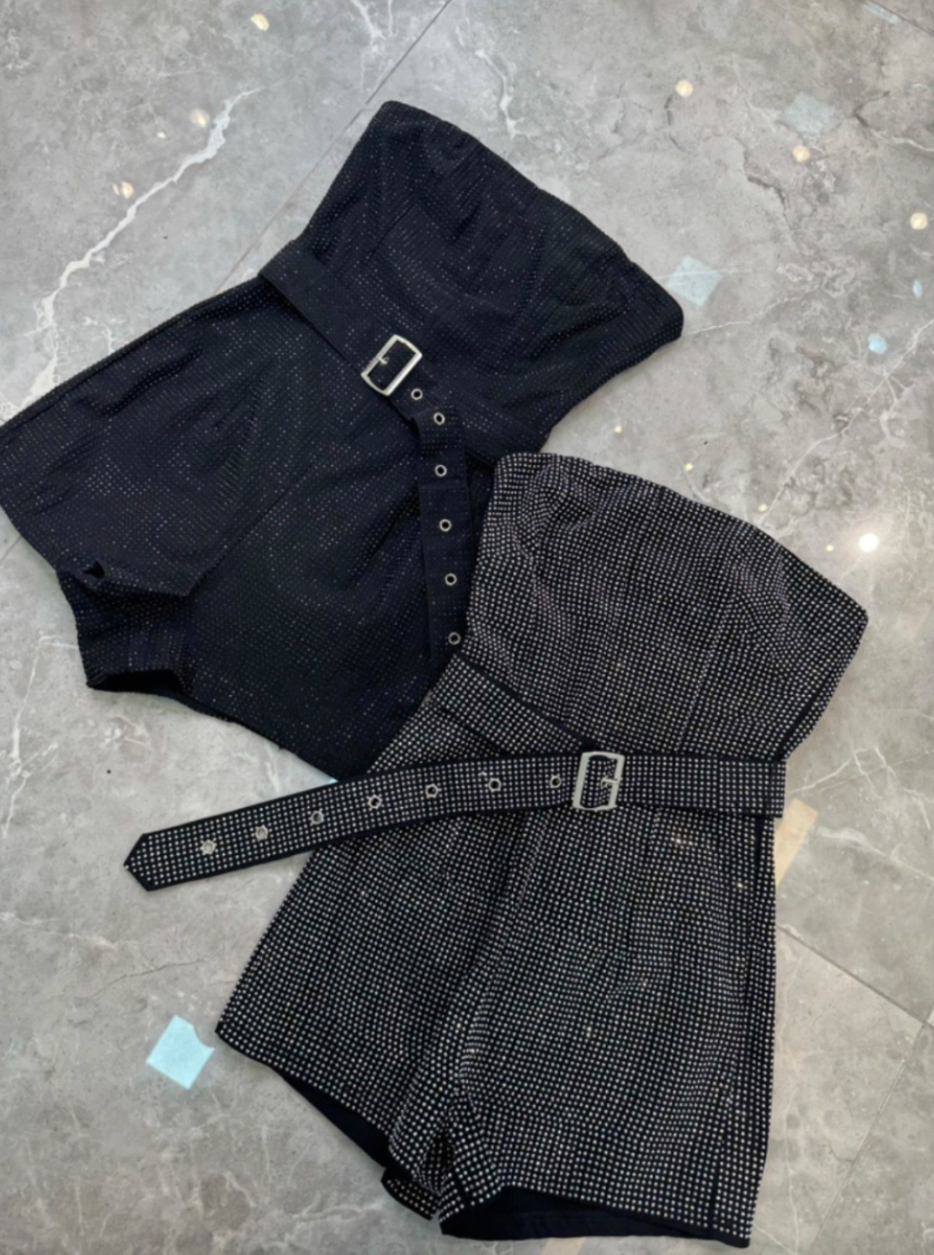 Questa tutina elegante è perfetta per le occasioni speciali. I suoi brillantini la rendono glamour mentre la cintura in vita sottolinea la tua figura. Indossala e sentiti straordinaria!