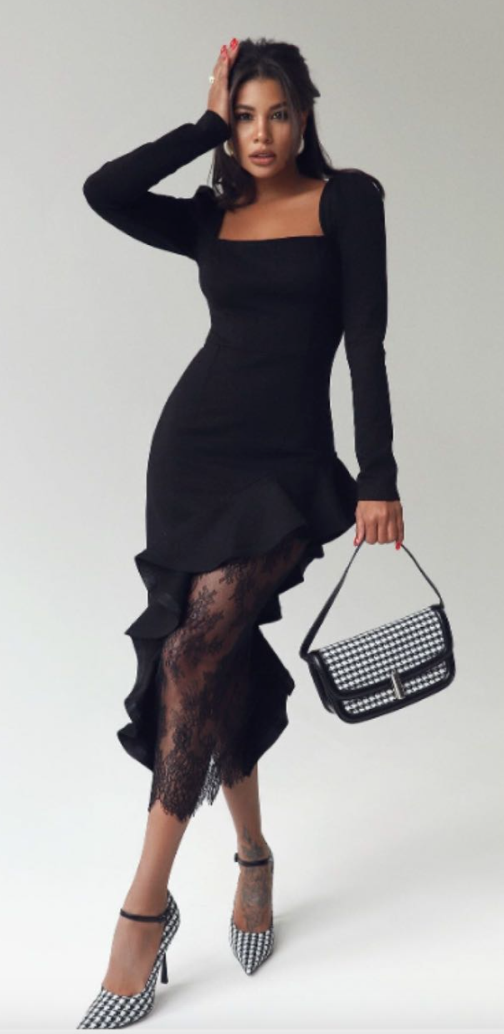 L'abito elegante con spacco in pizzo è il perfetto connubio tra raffinatezza, sensualità e stile contemporaneo. Pensato per chi desidera un look sofisticato ma audace, questo capo è ideale per serate speciali, eventi esclusivi o occasioni dove l'eleganza è d'obbligo. Il gioco di contrasti tra il pizzo, un materiale delicato e intricato, e la sensualità dello spacco, crea un effetto visivo che cattura l'attenzione senza mai risultare eccessivo.