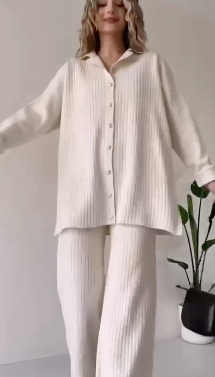 Completo Brenda è il tuo alleato perfetto per le giornate invernali. Caldo, comodo e morbido, il pantalone presenta una molla al girovita che si adatta perfettamente al tuo corpo, mentre la camicia con chiusura a bottoni completa il look classico e sempre comodo. Non c'è niente di meglio per affrontare le giornate più fredde con stile e comfort.