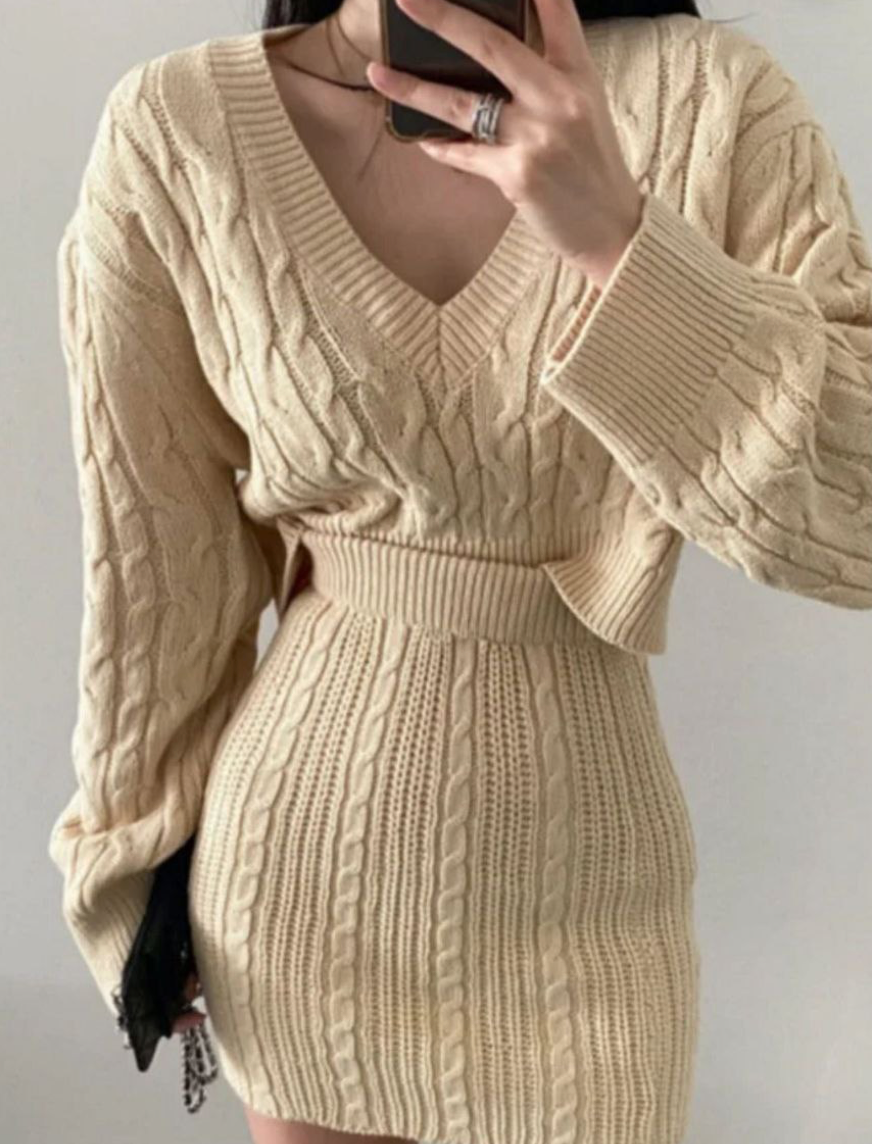Rendi il tuo guardaroba più elegante e versatile con il nostro completo Jennifer. La gonna e la maglia con scollo a V aggiungono un tocco di moda al tuo look. Perfetto per ogni occasione, questo completo è una scelta sicura per un look raffinato e di tendenza.
