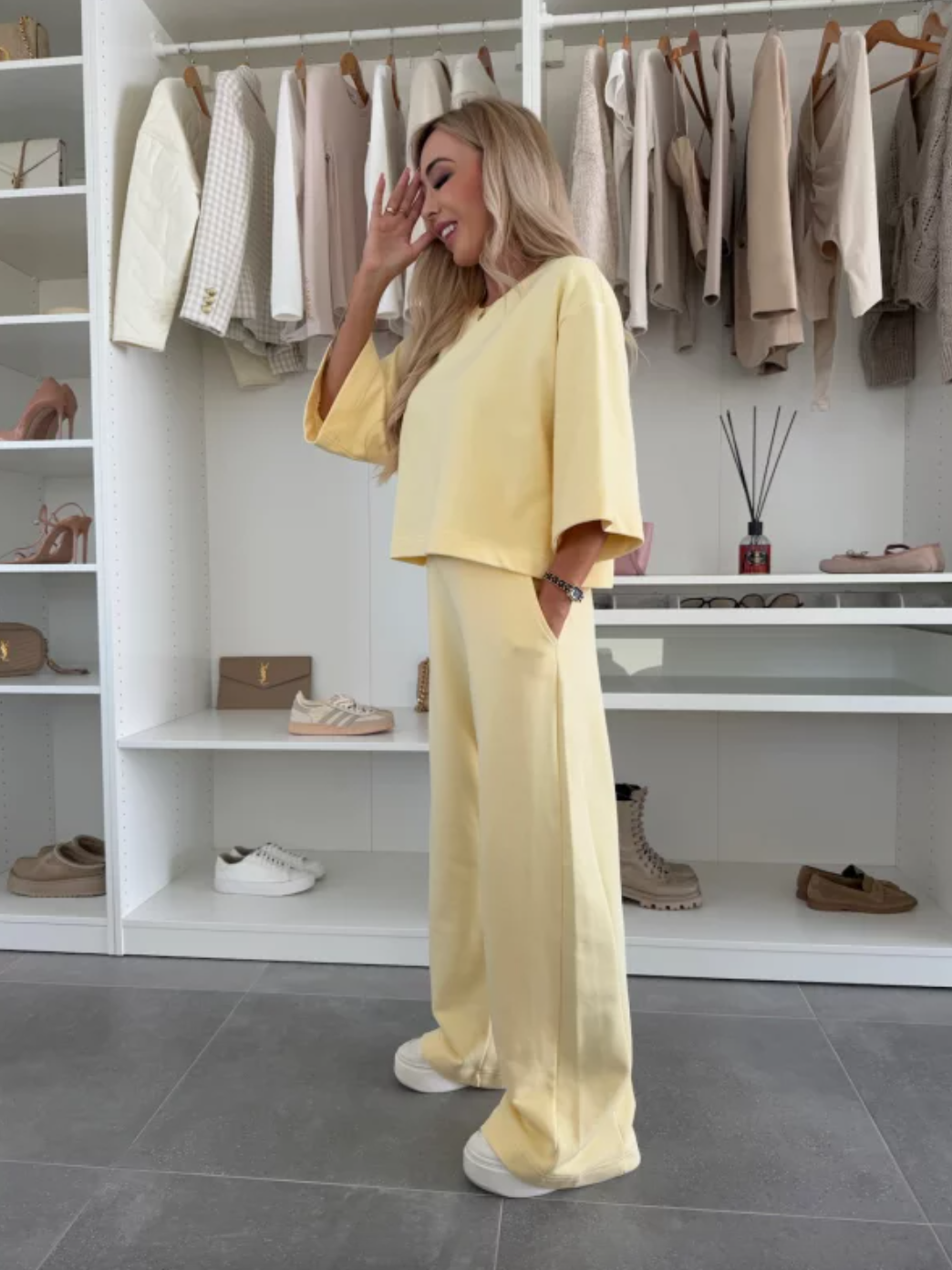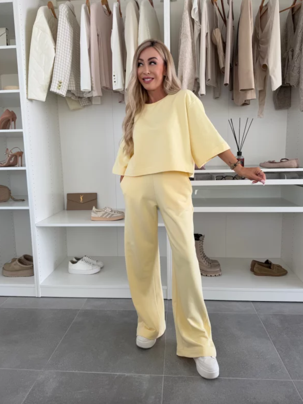 Il completo Timelessly Trendy è un'ottima scelta per i giorni primaverili. Grazie al suo design elegante e alla sua versatilità, sarà un'aggiunta senza tempo al tuo guardaroba. Perfetto per un look sofisticato e alla moda.