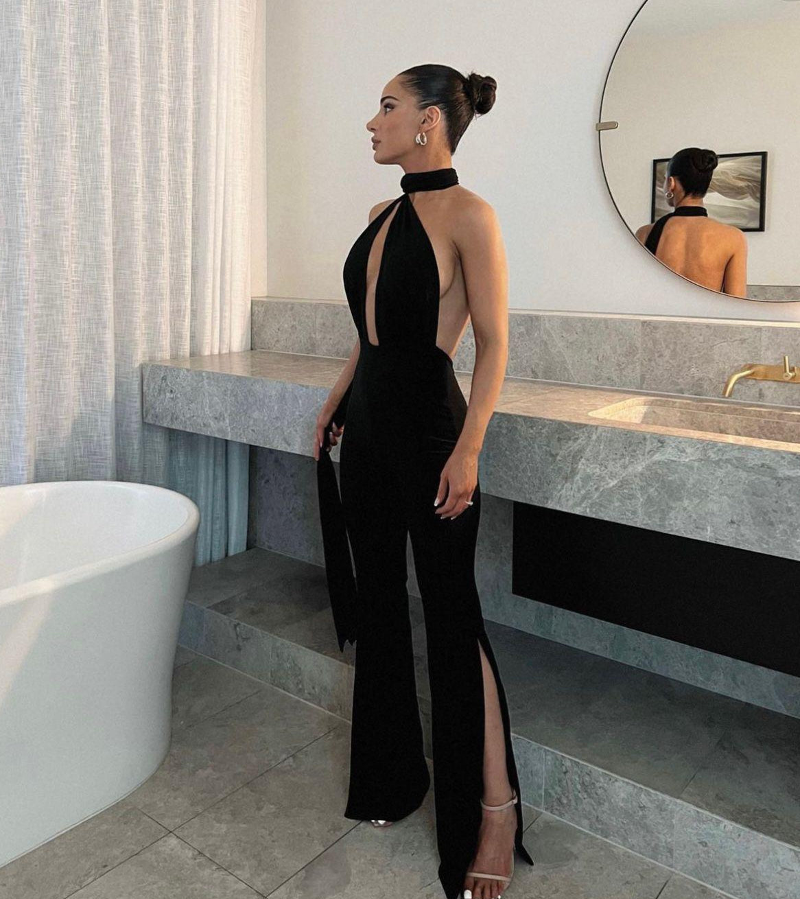 Questa tuta Jump Black unisce eleganza e sensualità in un design moderno e raffinato. La schiena scoperta valorizza la silhouette, mentre il taglio sartoriale assicura una vestibilità impeccabile. Perfetta per chi desidera un capo alla moda che esalti la femminilità con discrezione e stile.