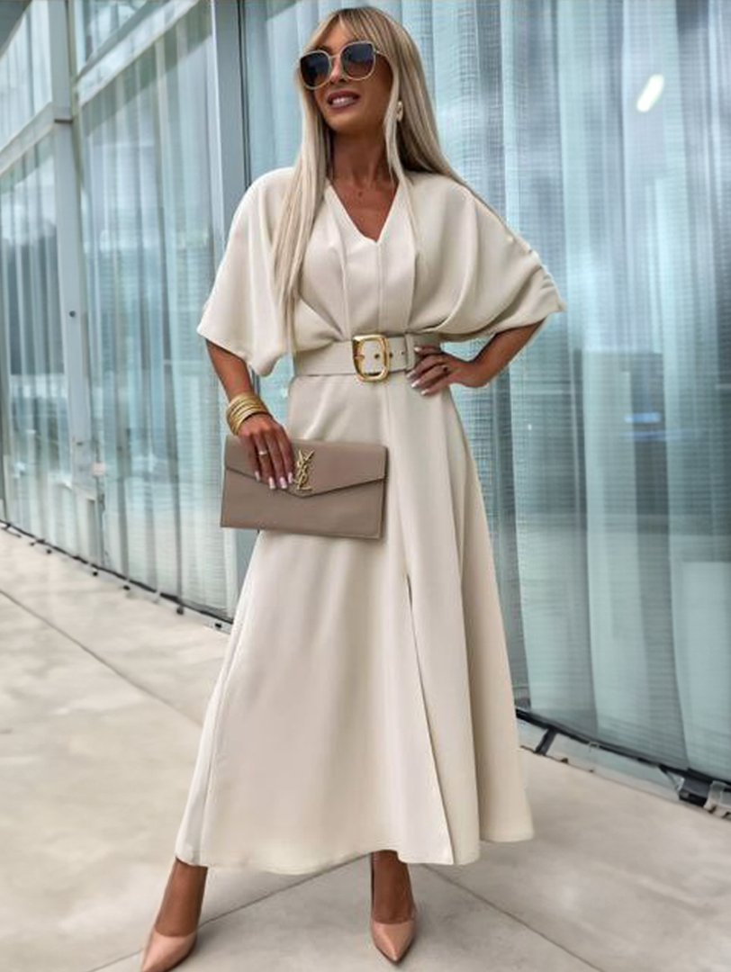 Il Vestito Estela è elegante e sofisticato grazie al suo cinturone impeccabile. La silhouette di questo vestito sarà perfetta per ogni occasione speciale, offrendo un look moderno e raffinato. Aggiungi un tocco di stile unico al tuo guardaroba con questo capo versatile.