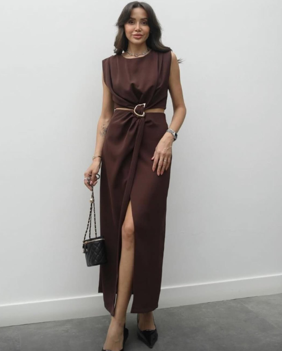 Il Vestito Aurora è l'eleganza personificata. Con un design sensuale e allo stesso tempo semplice, questo vestito ti farà sentire sicura e alla moda. Il dettaglio al centro aggiunge un tocco unico e sofisticato. Indossa il Vestito Aurora per essere la protagonista della serata.