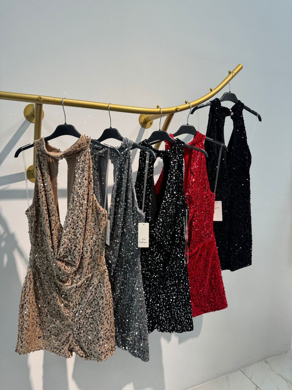 Il vestito Giada è perfetto per le occasioni speciali. Grazie alle sue paillettes, è un mix di eleganza e moda. Lo scollo profondo aggiunge un tocco di sensualità e rende il vestito unico e raffinato. Indossa il vestito Giada per essere al centro dell'attenzione con stile.